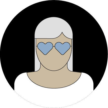 Зображення жінки в окулярах з лінзами у формі сердечок.